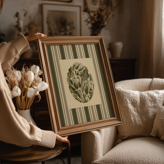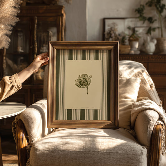 Retro cottagecore sage green Tulips flowers linocut prints Striped printable wall art decor