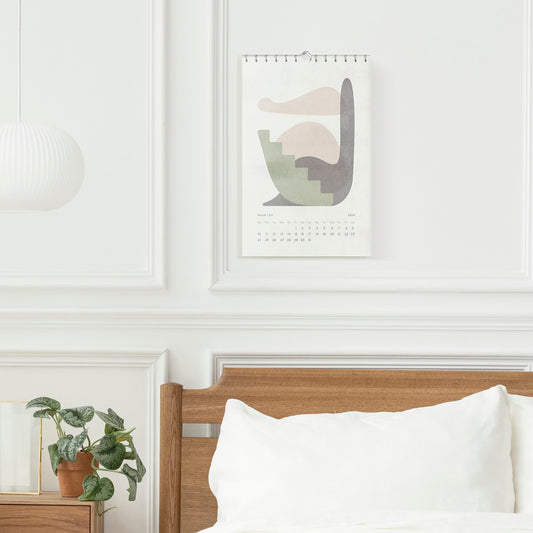 Abstract monthly printable calendar 2026 Minimalist lines natural illustrated wall decor for home office