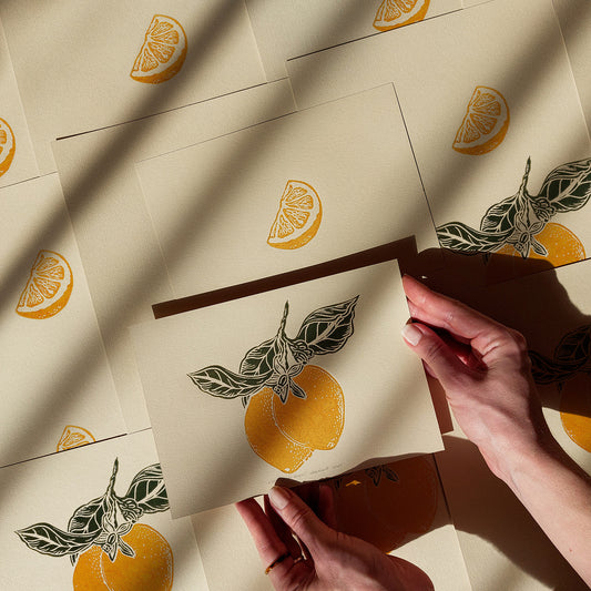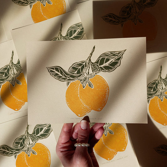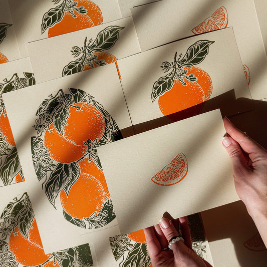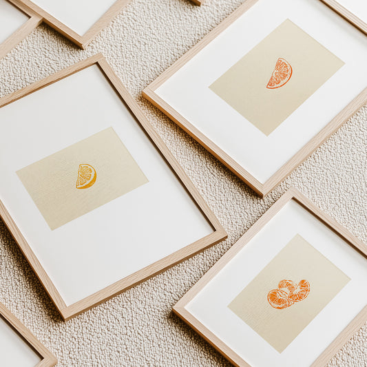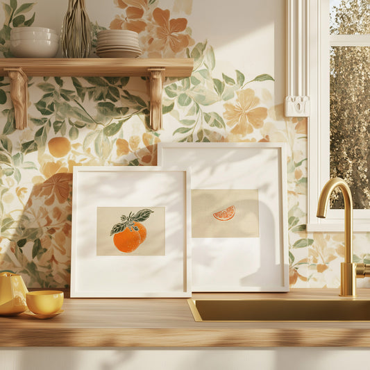 Mini gallery wall set of 2 A5 Vintage oranges fruits and slice linocut print for Kitchen art decor