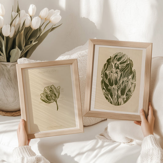 Gallery Wall Set of 2 Vintage Anatomy Tulip Flowers Linocut Print Wall art decor