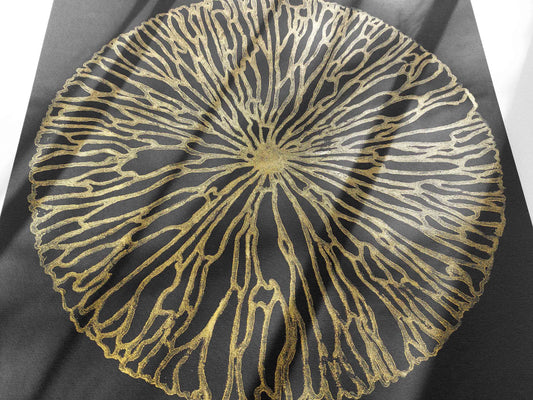 Black and gold abstract flower Linocut print for New home gift UNFRAMED