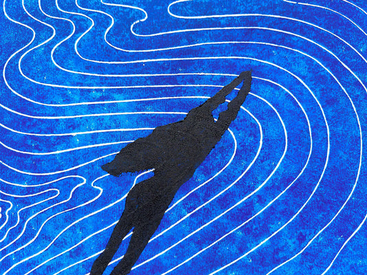 Girl swimming and Abstract blue water Linocut print art for Bedroom wall decor UNFRAMED