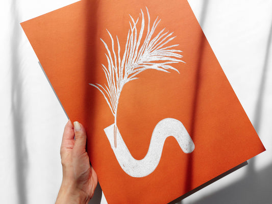 Terracotta and white Boho chic vase and plant wall art Linocut print for New home gift UNFRAMED