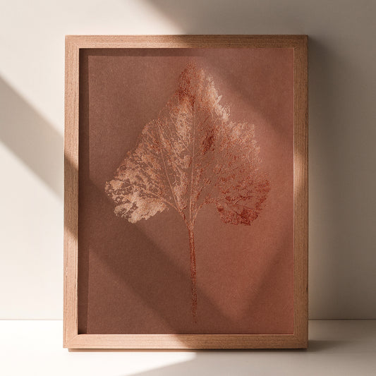 Cottagecore autumn bronze leaf monotype print for living room decor