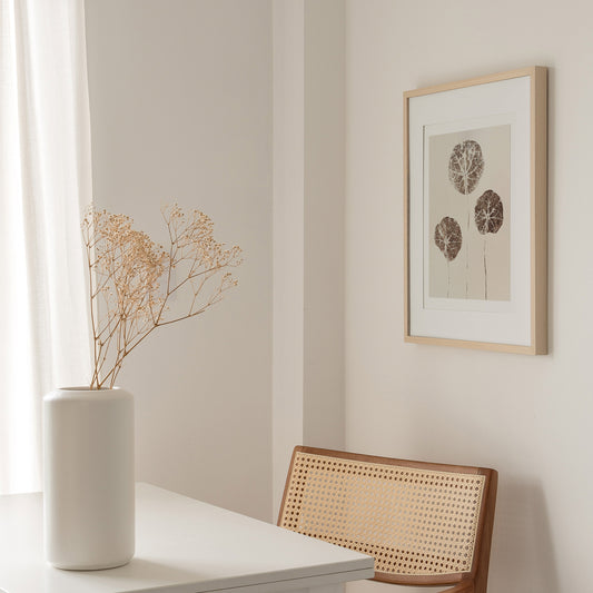 Explore our diverse range of artistic creations, including Linocut Prints, Monotype Prints, Original Line Drawings, Original Pressed Flowers Artworks, and Digital Posters. Each piece is thoughtfully crafted to bring a touch of botanical elegance, classical charm, minimalist sophistication, or the serene beauty of nature to your kitchen or dining area.