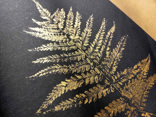 Gold and black Fern textured plant Monotype print N1 for Nature lover gift UNFRAMED