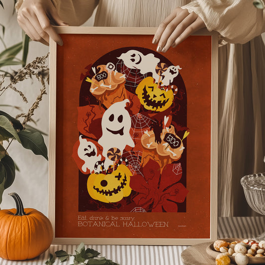 Mystical Halloween pumpkin ghost muffins dessert printable wall art Digital poster