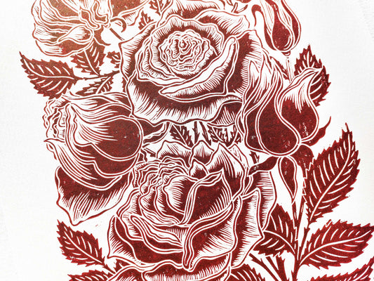 Burgundy roses flower Linocut print for Nature lover gift UNFRAMED