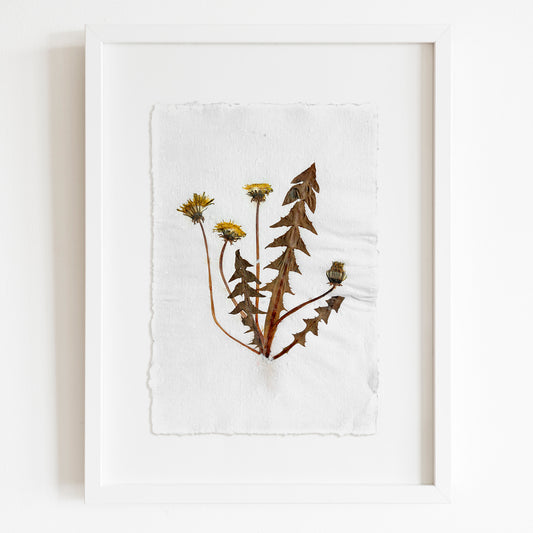 Herbarium III Yellow dandelion pressed flower and plant | Recycled paper | Original artwork | UNFRAMED