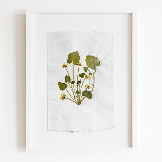 "Ficaria verna" Herbarium Yellow and green dried flower Original artwork Recycled paper UNFRAMED