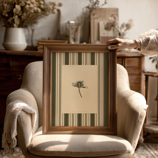 Retro cottagecore sage green Daffodil flower linocut prints Striped printable wall art decor N2