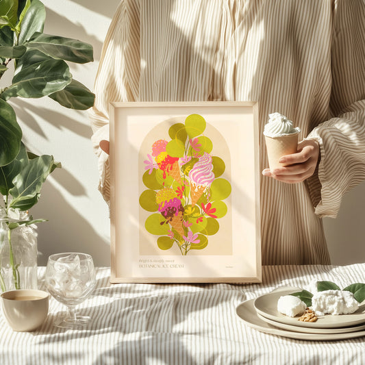 Botanical vintage ice cream cone dessert digital poster for kids playroom decor