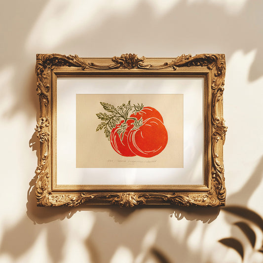 N2 Vintage tomatoes linocut print for pantry wall art decor