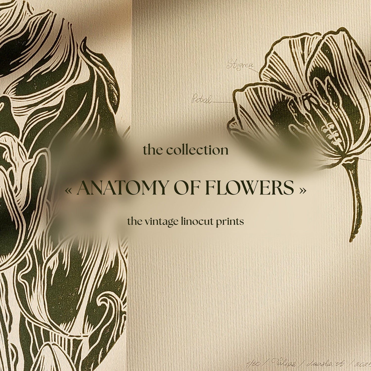 «Anatomy of flowers» - the vintage anatomy flowers linocut prints