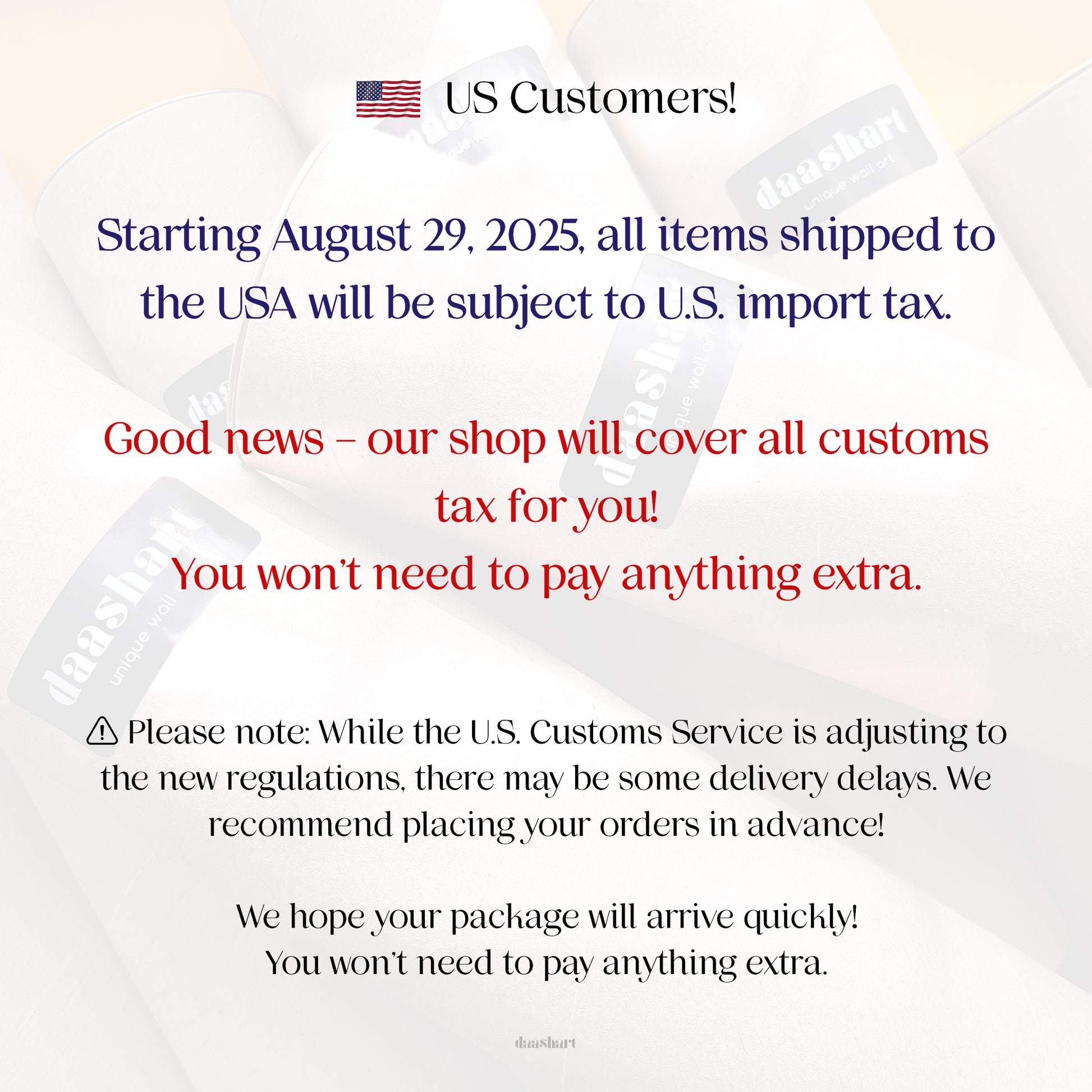 *Please keep in mind that, during the holiday season, your shipment may take a little longer!