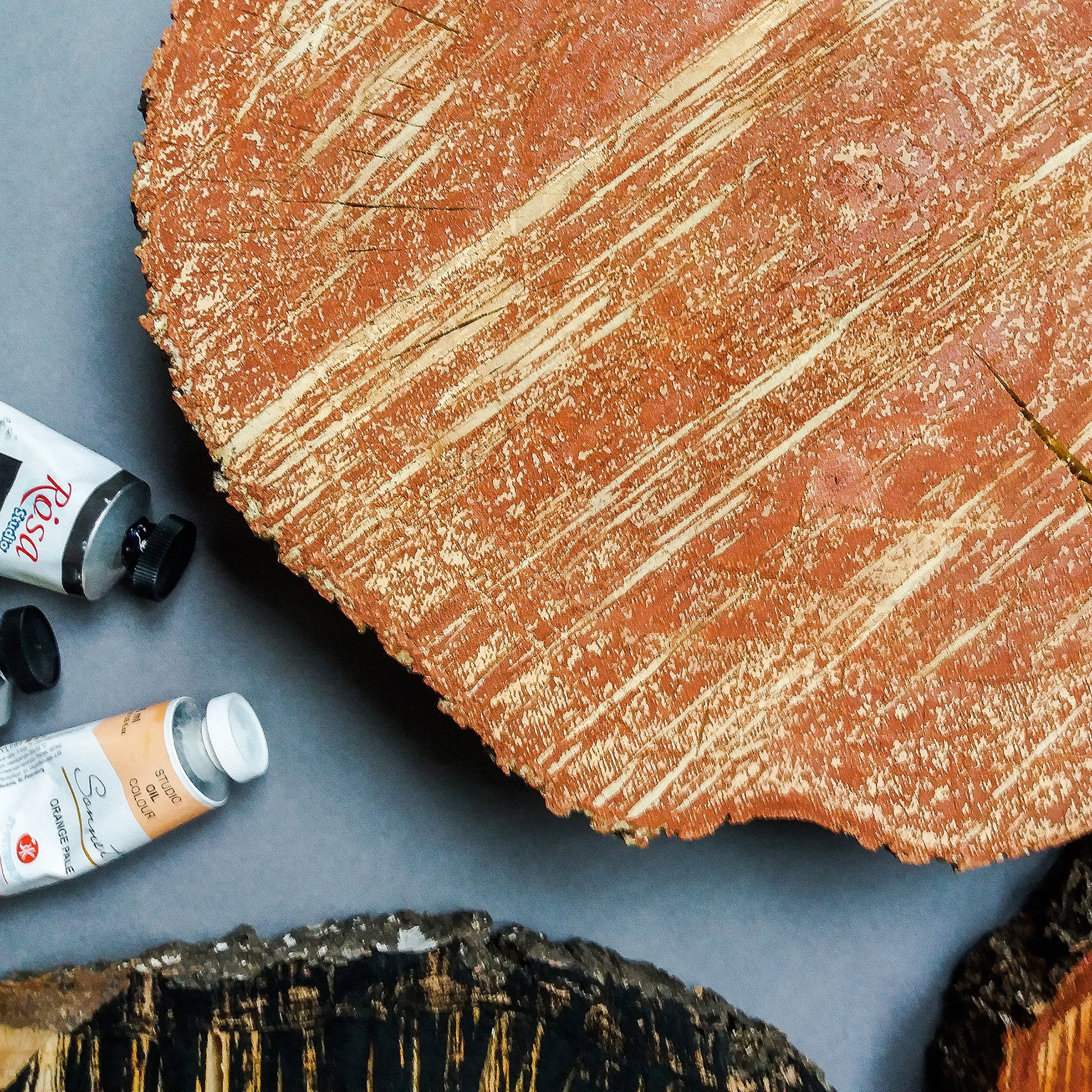 Next, using specialist carving tools, I thoroughly carve a design into a linoleum block, leaving raised surfaces to be subsequently covered with oil ink. Once done with carving out the picture, I apply quality color oil onto the linoleum block using a roller.