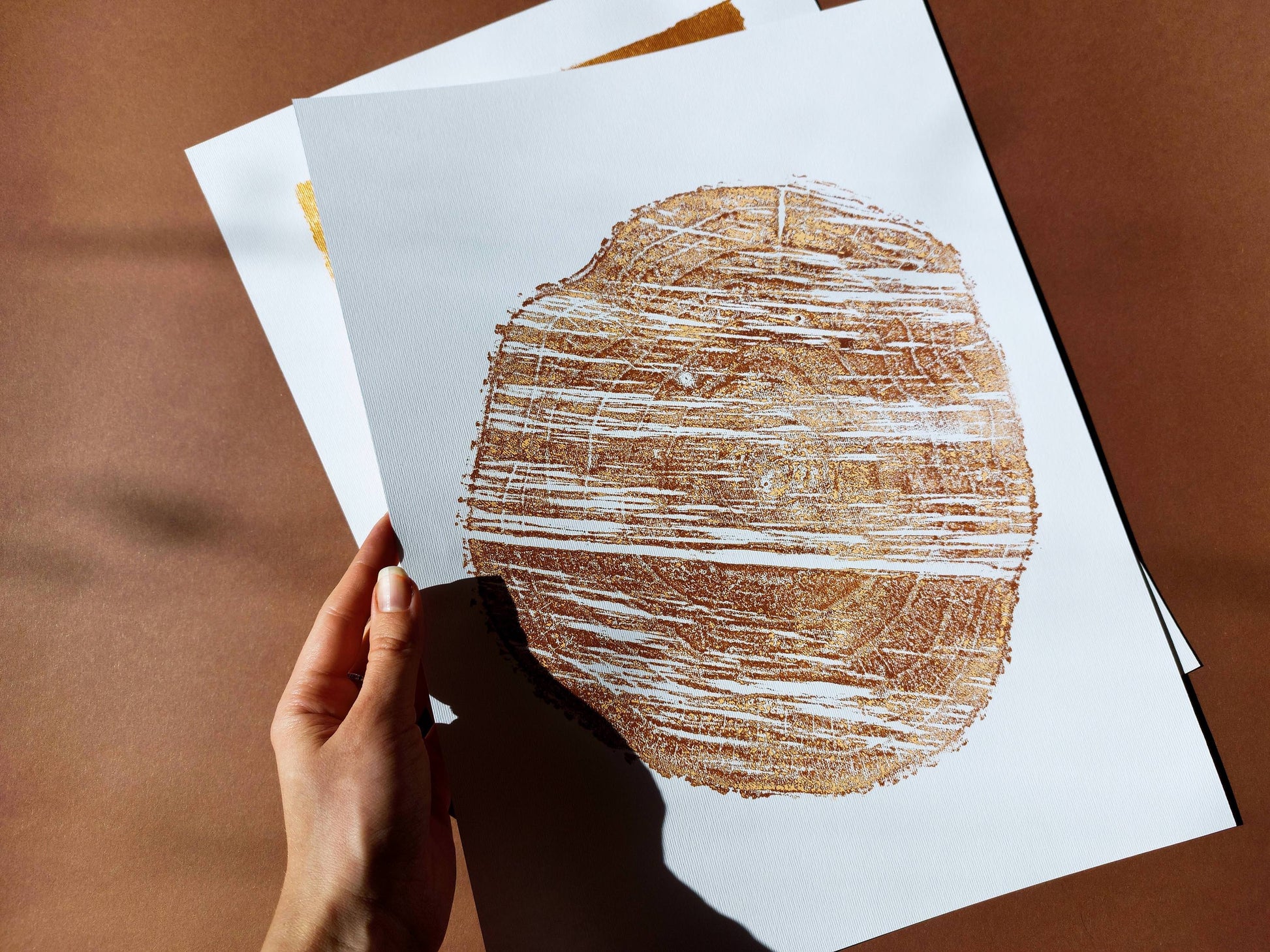✦ Imprint - brown, beige oil ink and gold acrylic ink
