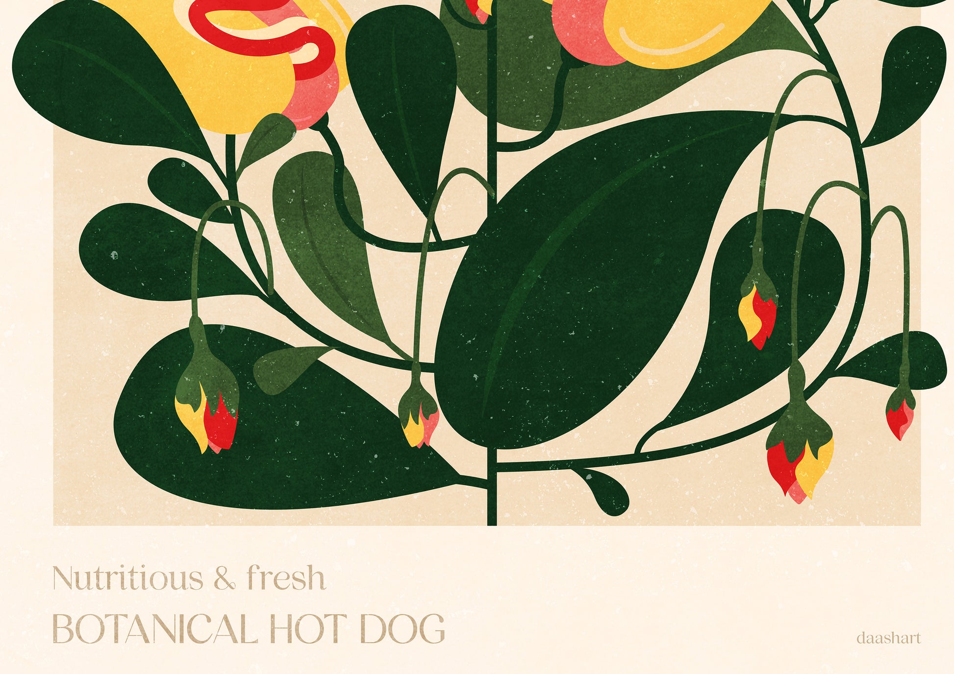 The Botanical Pizza Poster captures the essence of this beloved Italian dish, adorned with botanical accents that add a fresh and artistic touch. The French Fries Poster showcases the golden goodness of everyone's favorite snack, complemented by botanical motifs that lend an air of playfulness. Lastly, the Hot Dog Poster combines the nostalgic allure of this classic street food with whimsical botanical elements, creating a visual delight.