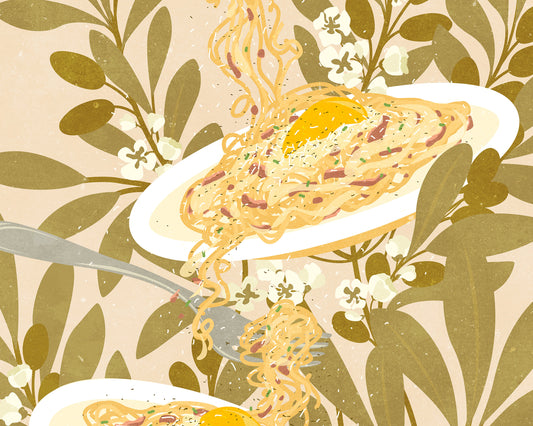 Healthy printable illustrated 2026 calendar Abstract fried eggs, salad, salmon, and beef meat kitchen wall art decor