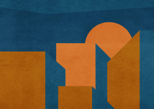 Navy blue and terracotta Abstract cityscape poster « Sunsetcity »