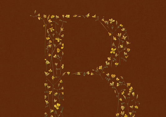 Terracotta personalized name letter prints Pressed yellow wildflowers poster