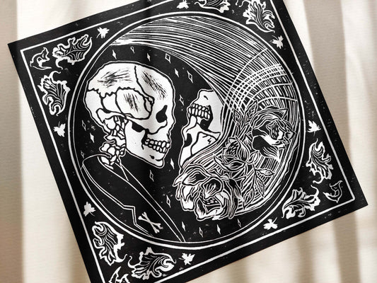 Вічне кохання Інь Янь Череп вона та він Ліногравюра для готичного подарунка коханому БЕЗ РАМКИ