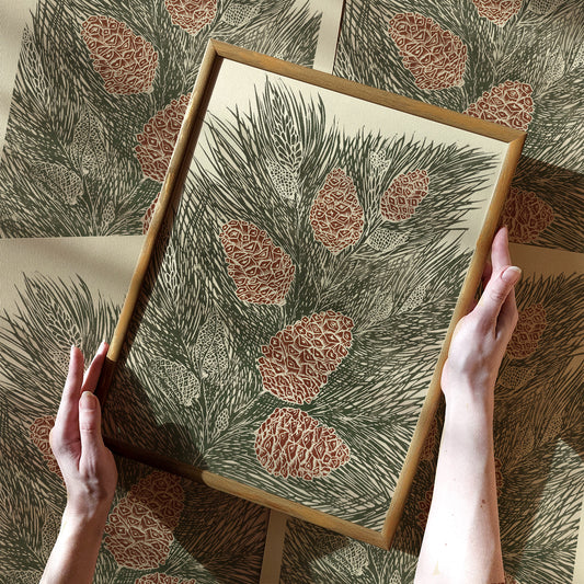 Vintage cottagecore Cactuses sage green linocut print Reading nook wall art decor