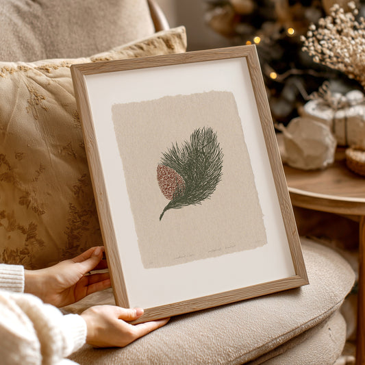 Printable retro cottagecore pinecone linocut prints for fireplace foraged wall art decor