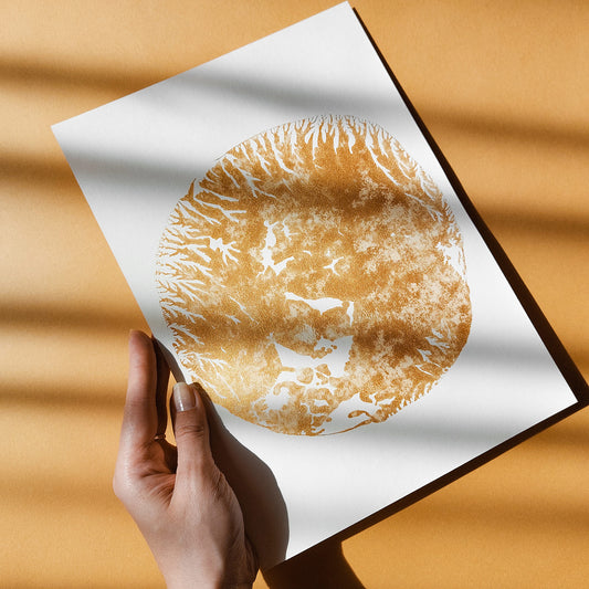 Abstract golden sun symbol monotype print Minimalist contemporary wall art decor