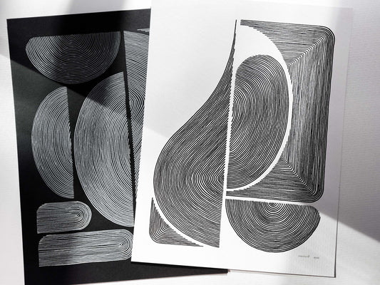 №12 Біло-чорна геометрична абстрактна лінія у формі ілюстрації для подарунка на новий дім БЕЗ РАМКИ