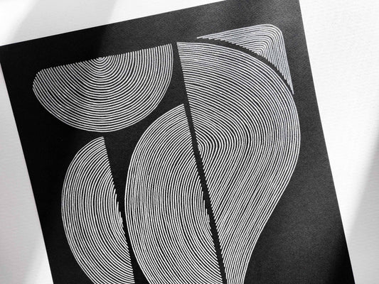 №3 Унікальний чорно-білий малюнок «Геометрична симфонія» Абстрактні форми ліній для подарунка на Новий будинок БЕЗ РАМКИ