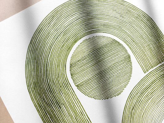 Sage green geometric abstract arch Original line hand drawn artwork