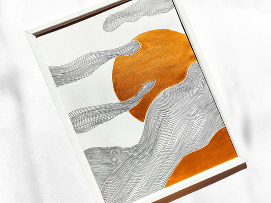 №6 Унікальне зображення золотого сонця та чорної лінії для подарунка на новий дім БЕЗ РАМКИ