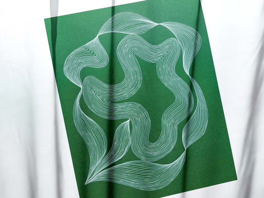 Смарагдово-зелена абстрактна квіткова лінія у формі ілюстрації для подарунка любителю природи БЕЗ РАМКИ