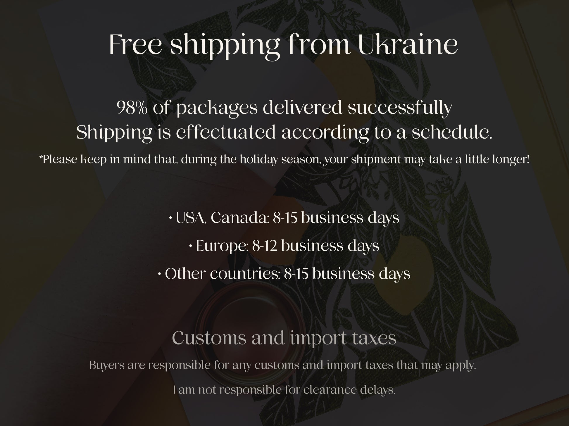* Будь ласка, майте на увазі, що під час святкового сезону ваше відправлення може зайняти трохи більше часу!