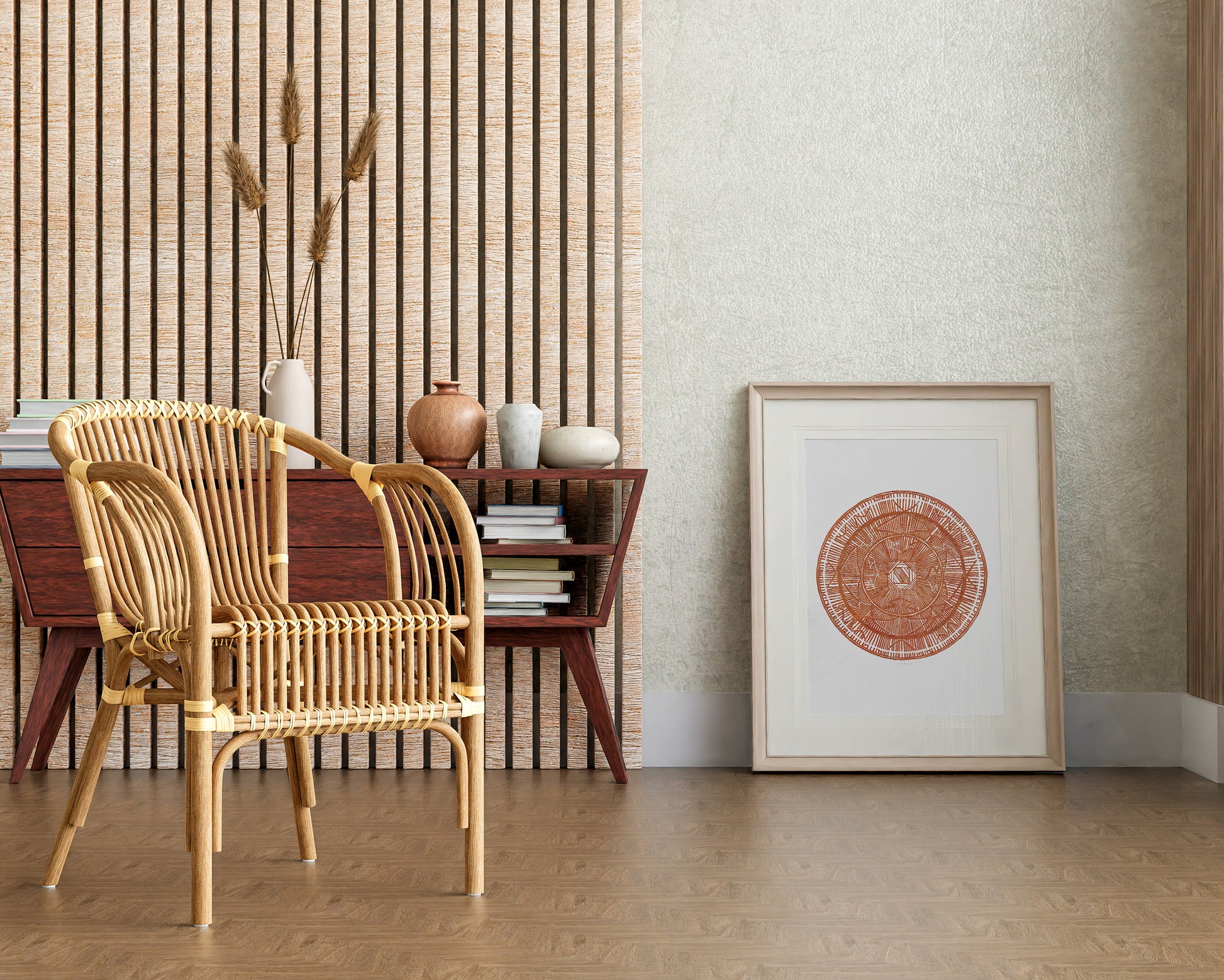 Large linocut print geometric bohemian eclectic circle African american Original artwork for Living room decor UNFRAMED