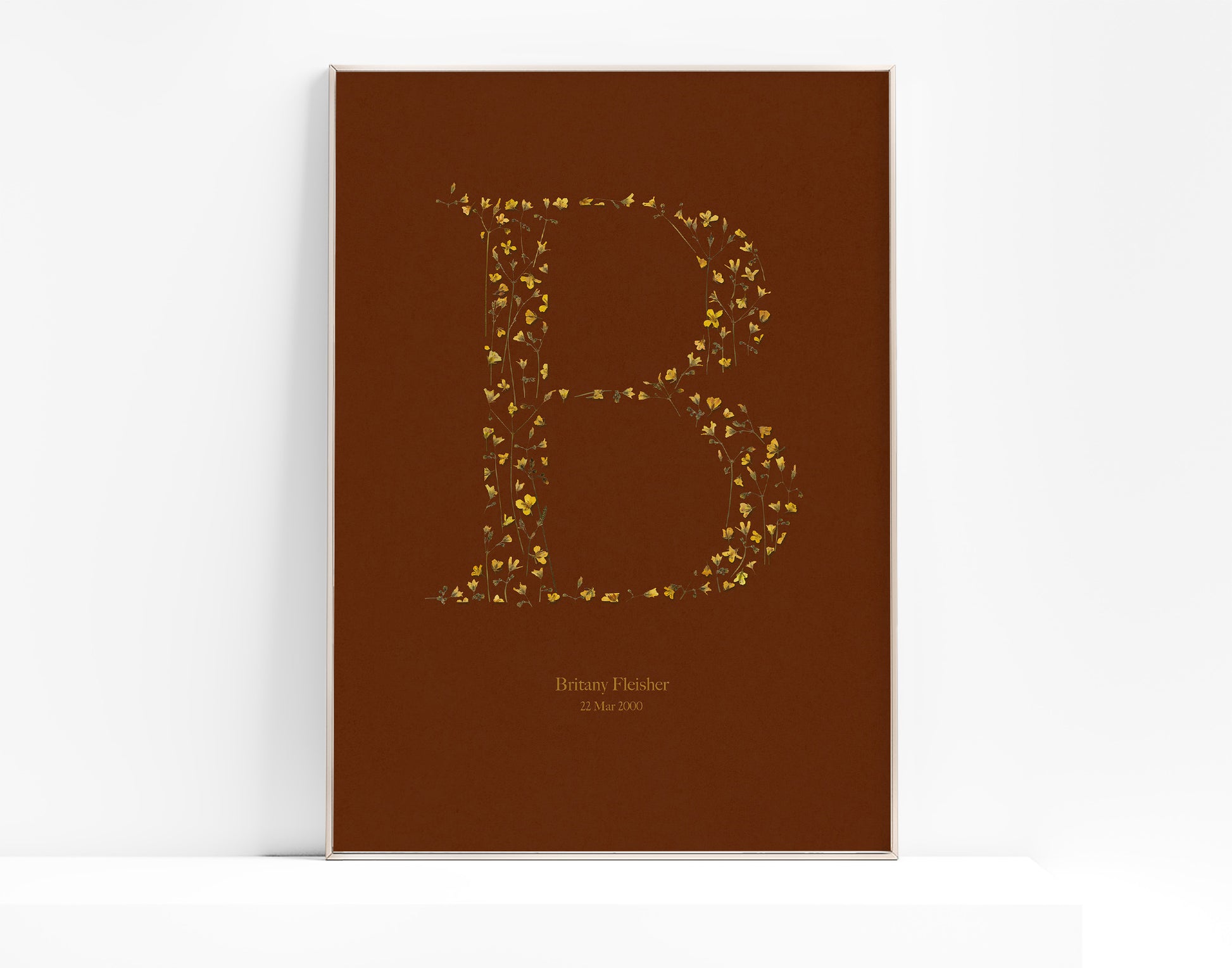 Elevate your bedroom decor with a touch of personalized elegance! Introducing our Personalized Name Letter Prints—a unique and charming blend of Terracotta Yellow Pressed Flowers and Plants. This Printable Initial Wall Art is a celebration of individuality, a personalized masterpiece crafted for your space. With the convenience of INSTANT DOWNLOAD, you can effortlessly enhance your bedroom with this customized poster.