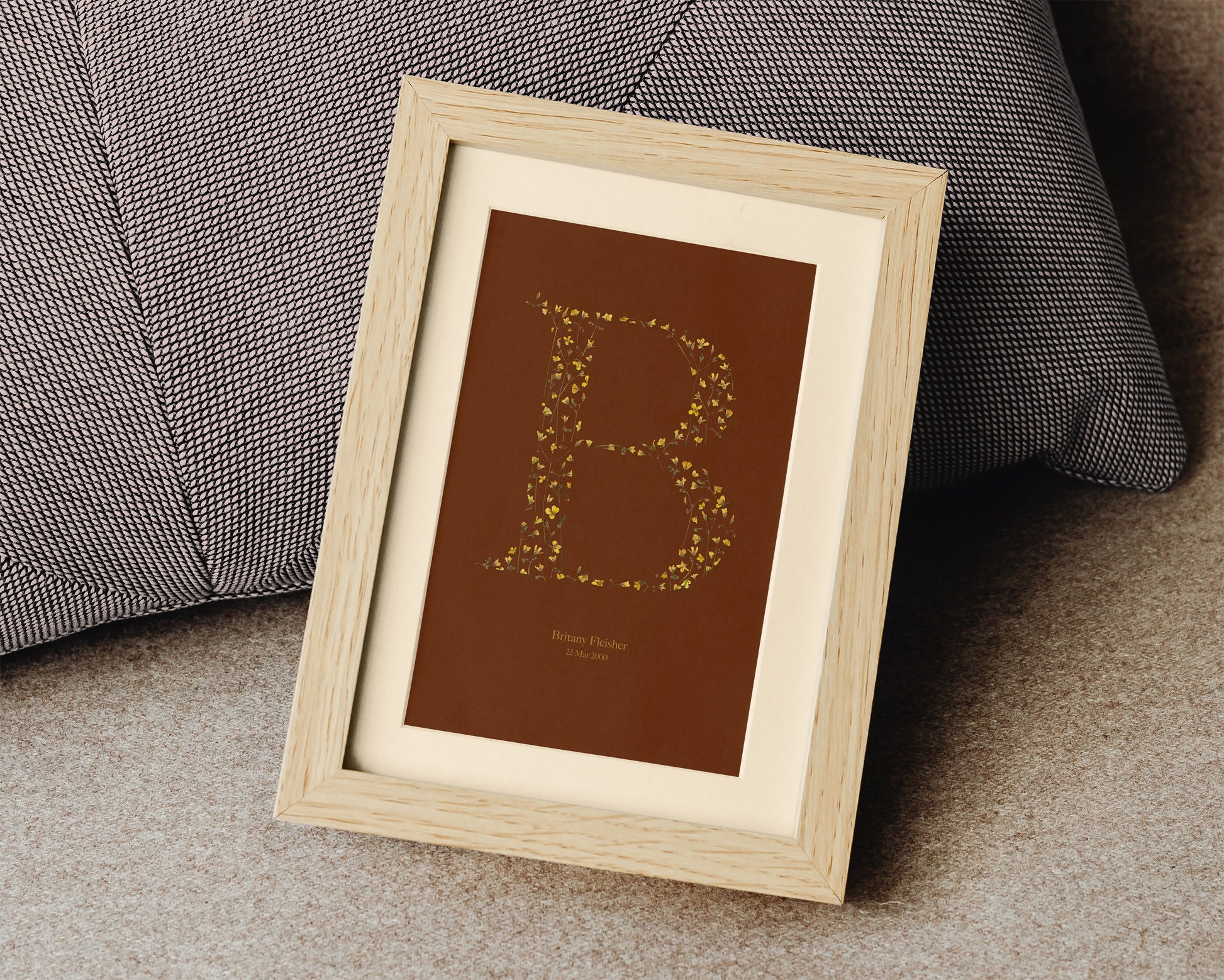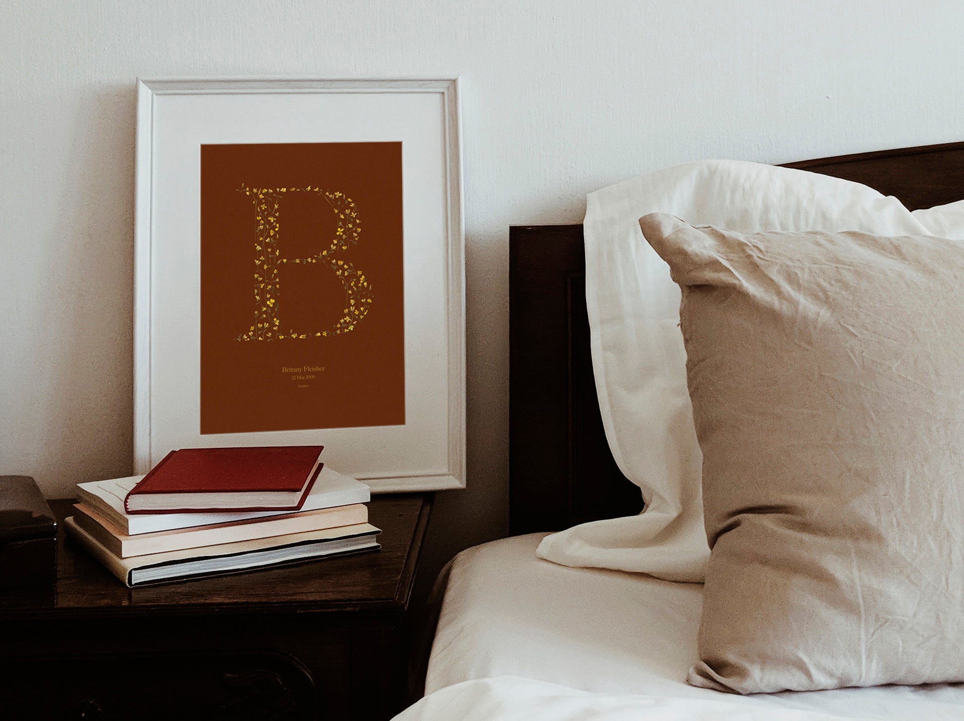 Perfect for those who appreciate the fusion of personalization and natural elements, these Personalized Name Letter Prints seamlessly combine modern convenience with timeless botanical allure. Transform your bedroom into a personalized haven with the Terracotta Yellow Pressed Flower and Plants—a unique and thoughtful addition to your wall decor.
